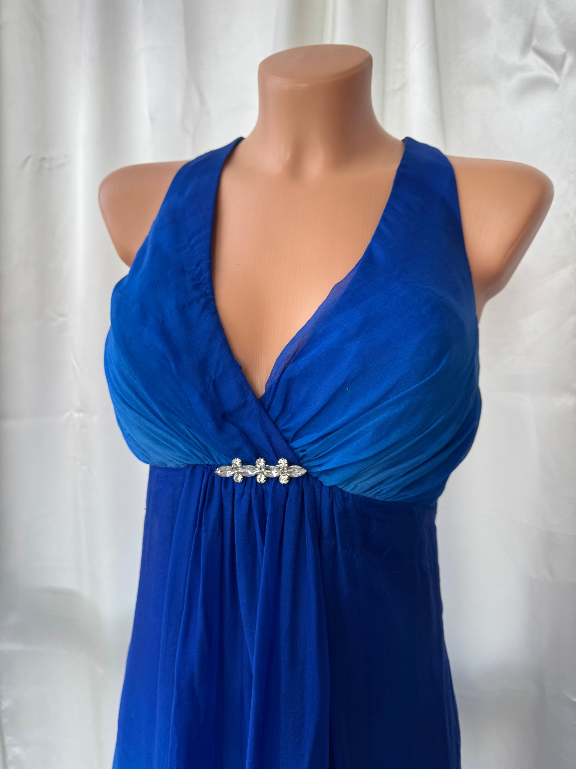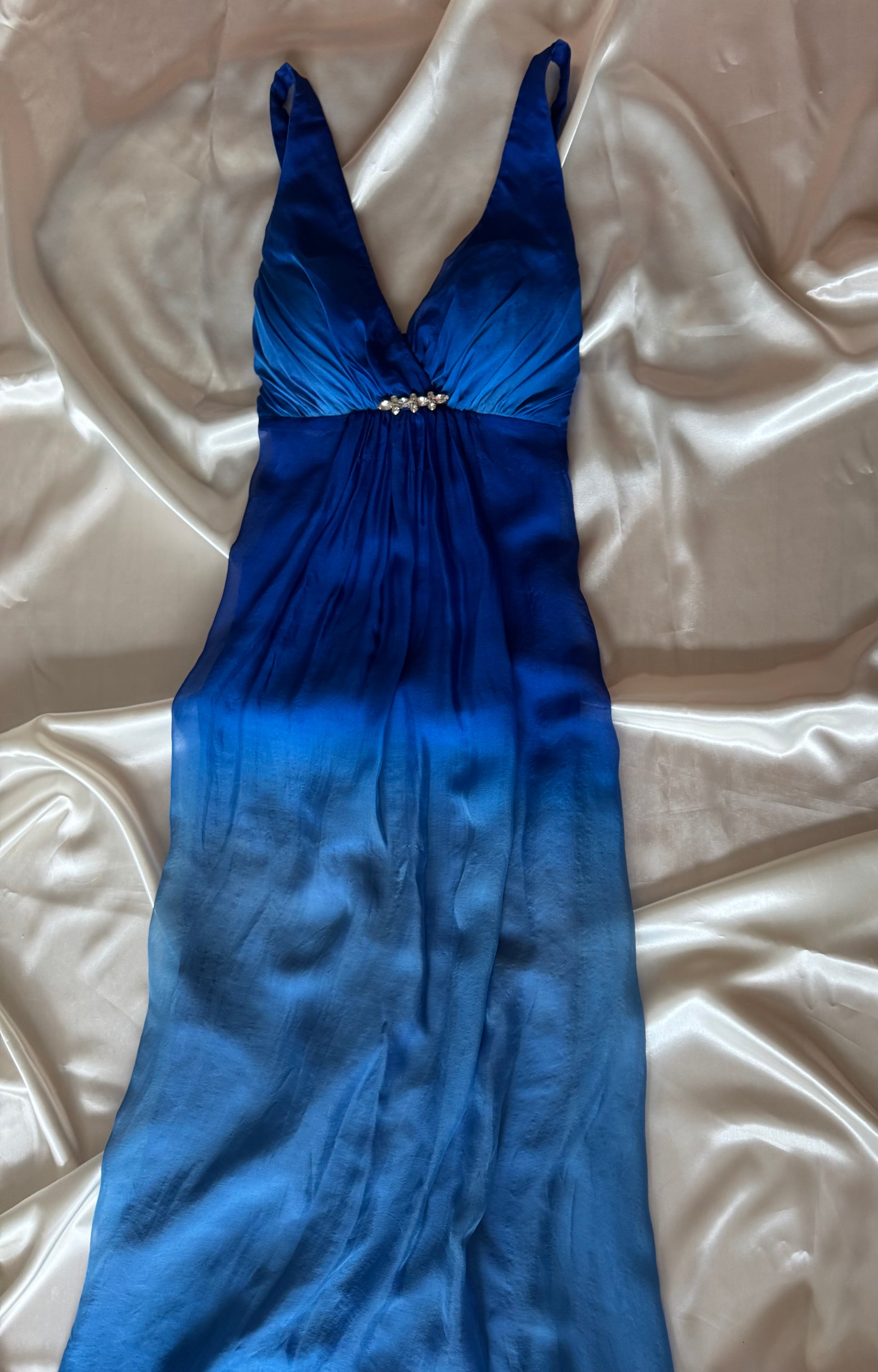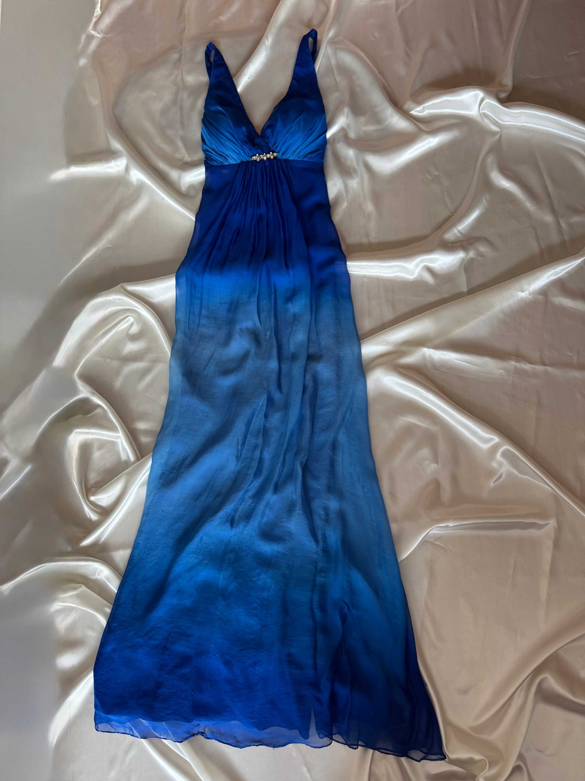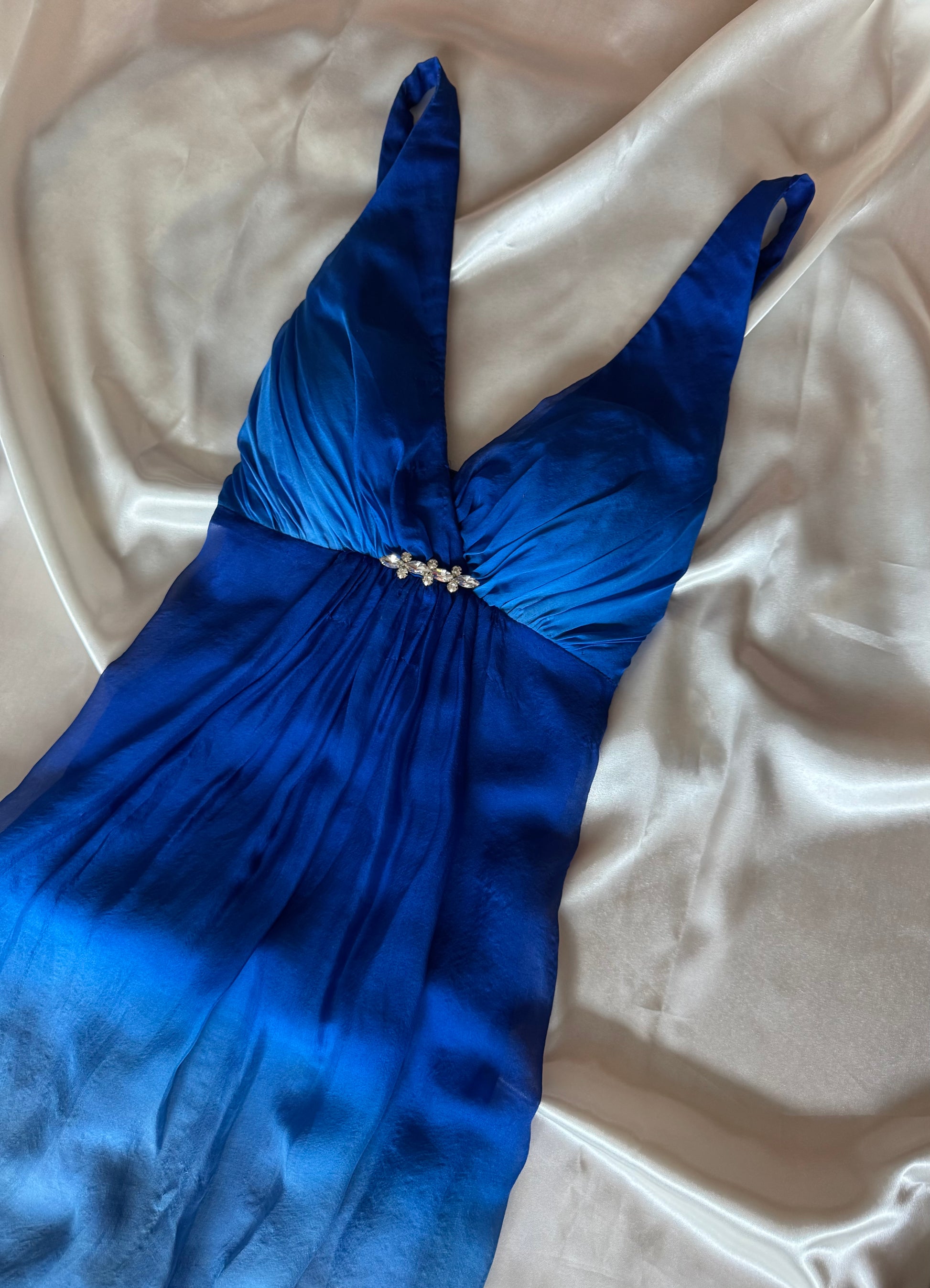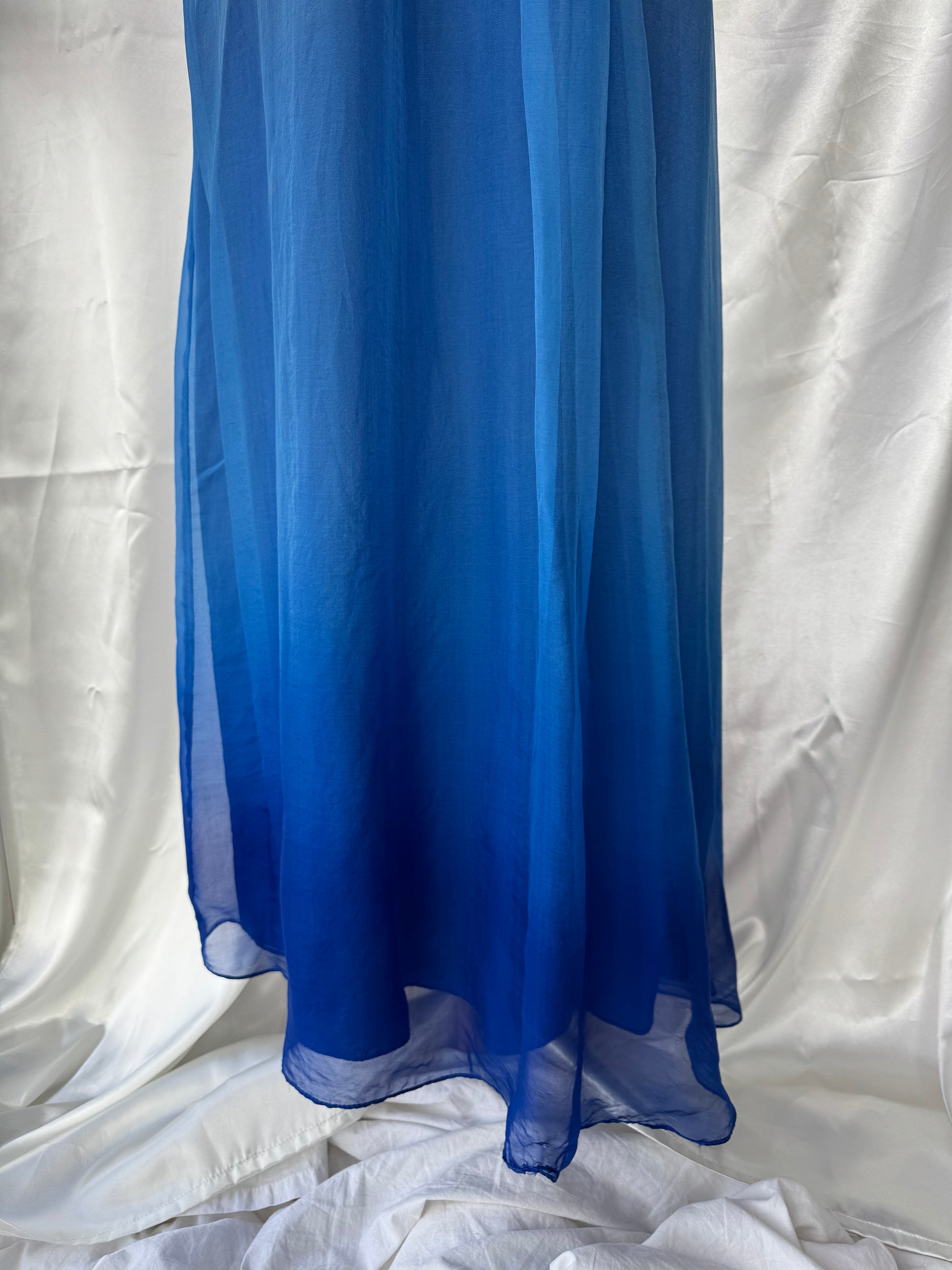 Blue Lagoon Silk Vintage Long Ombre Summer Dress