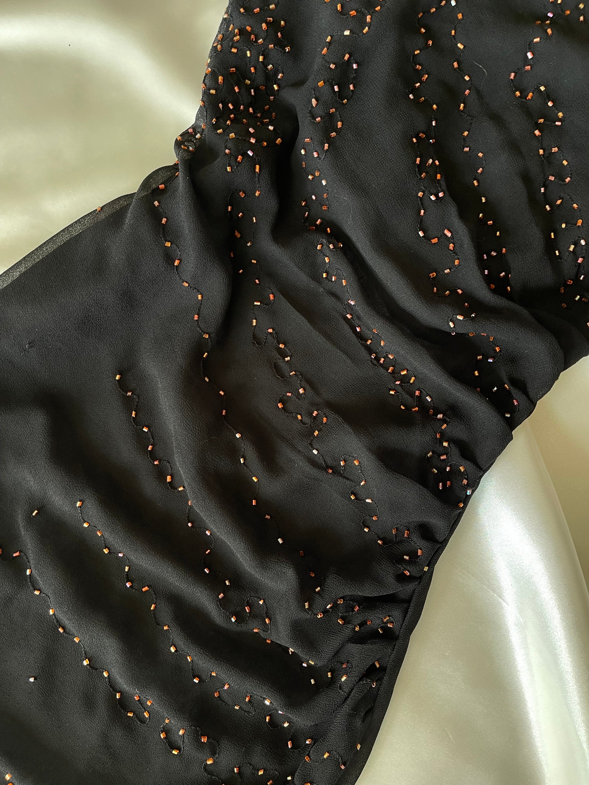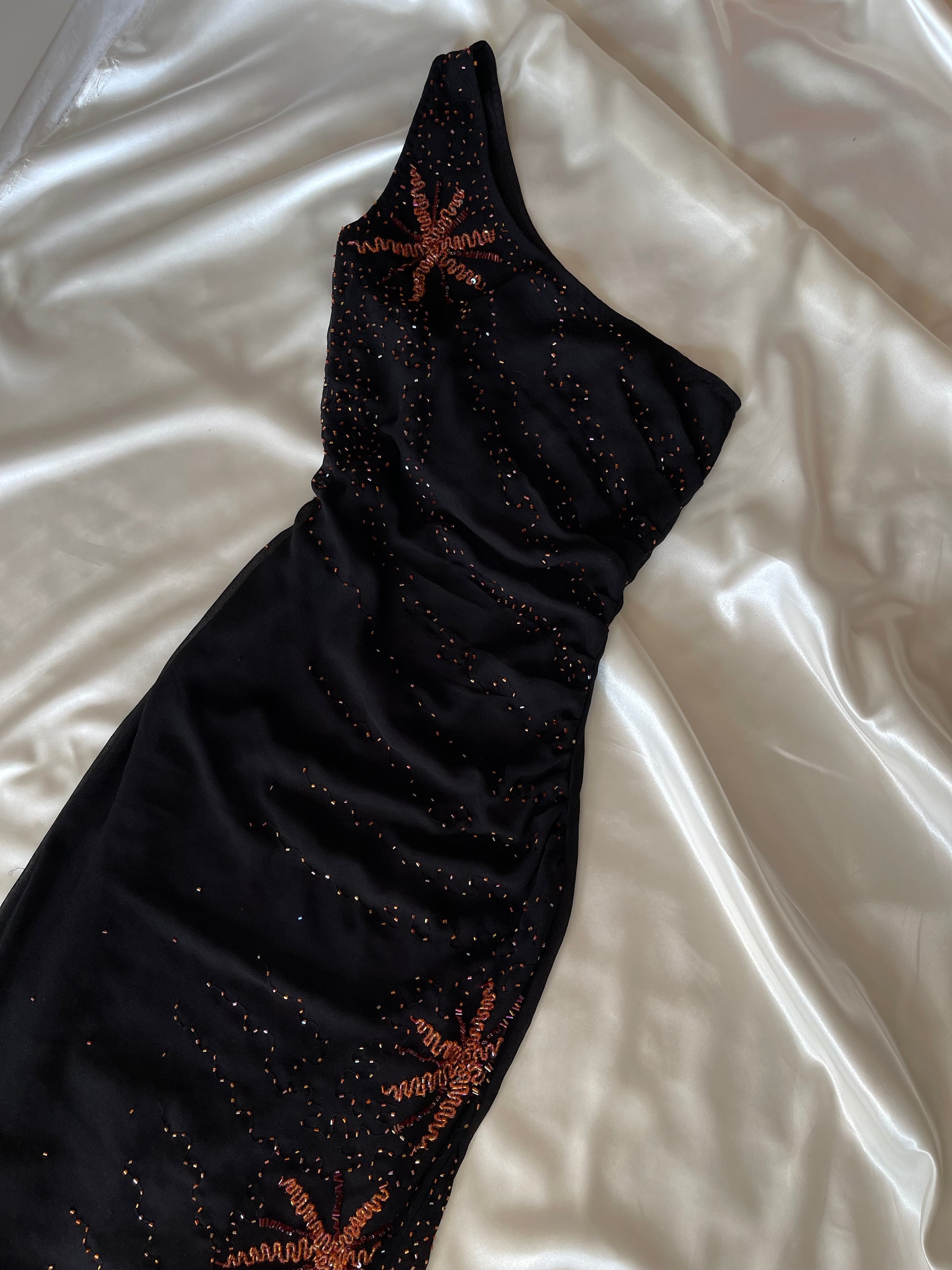 This black beaded one shoulder vintage gown is perfect for any formal occasion 💗