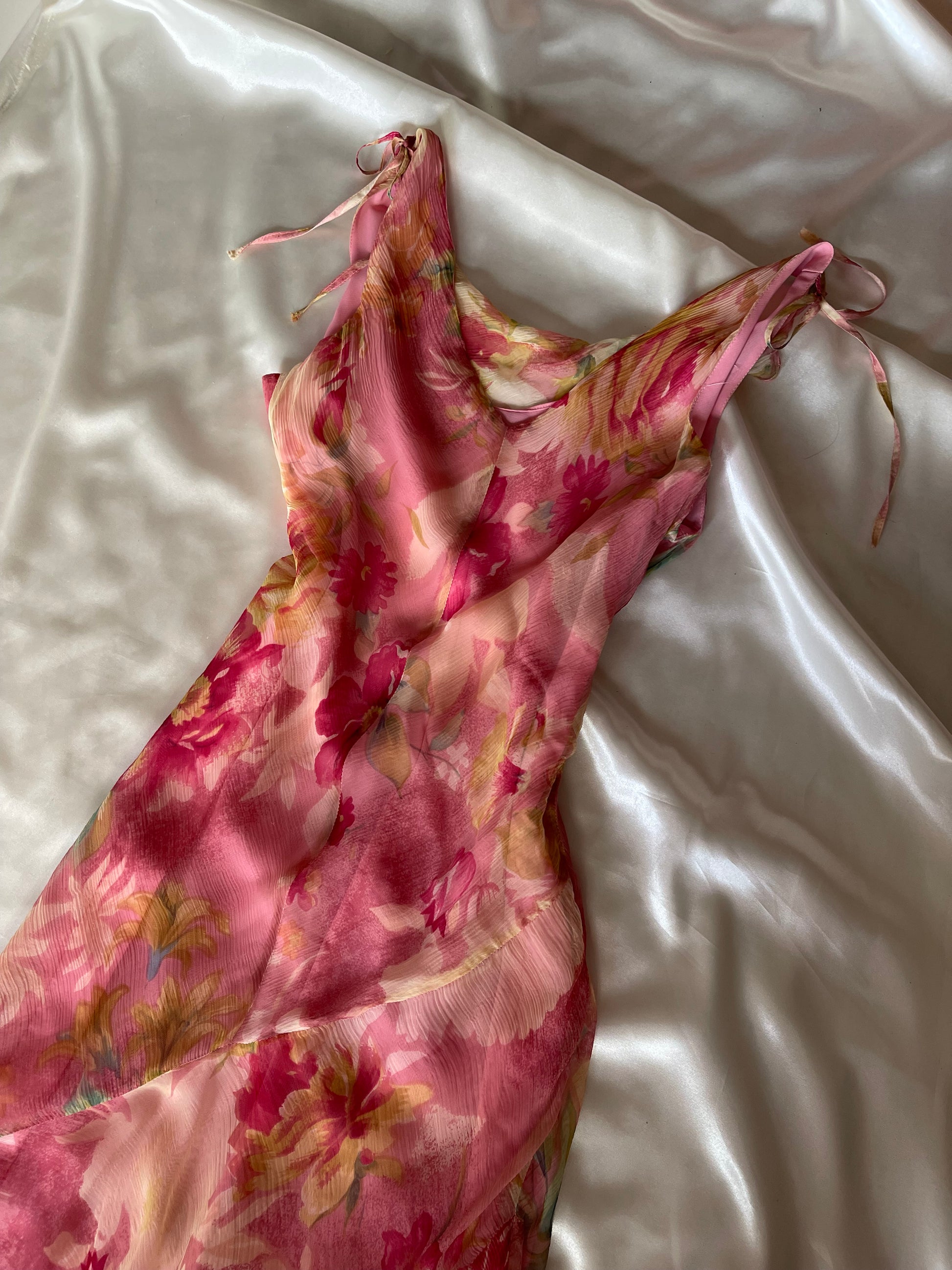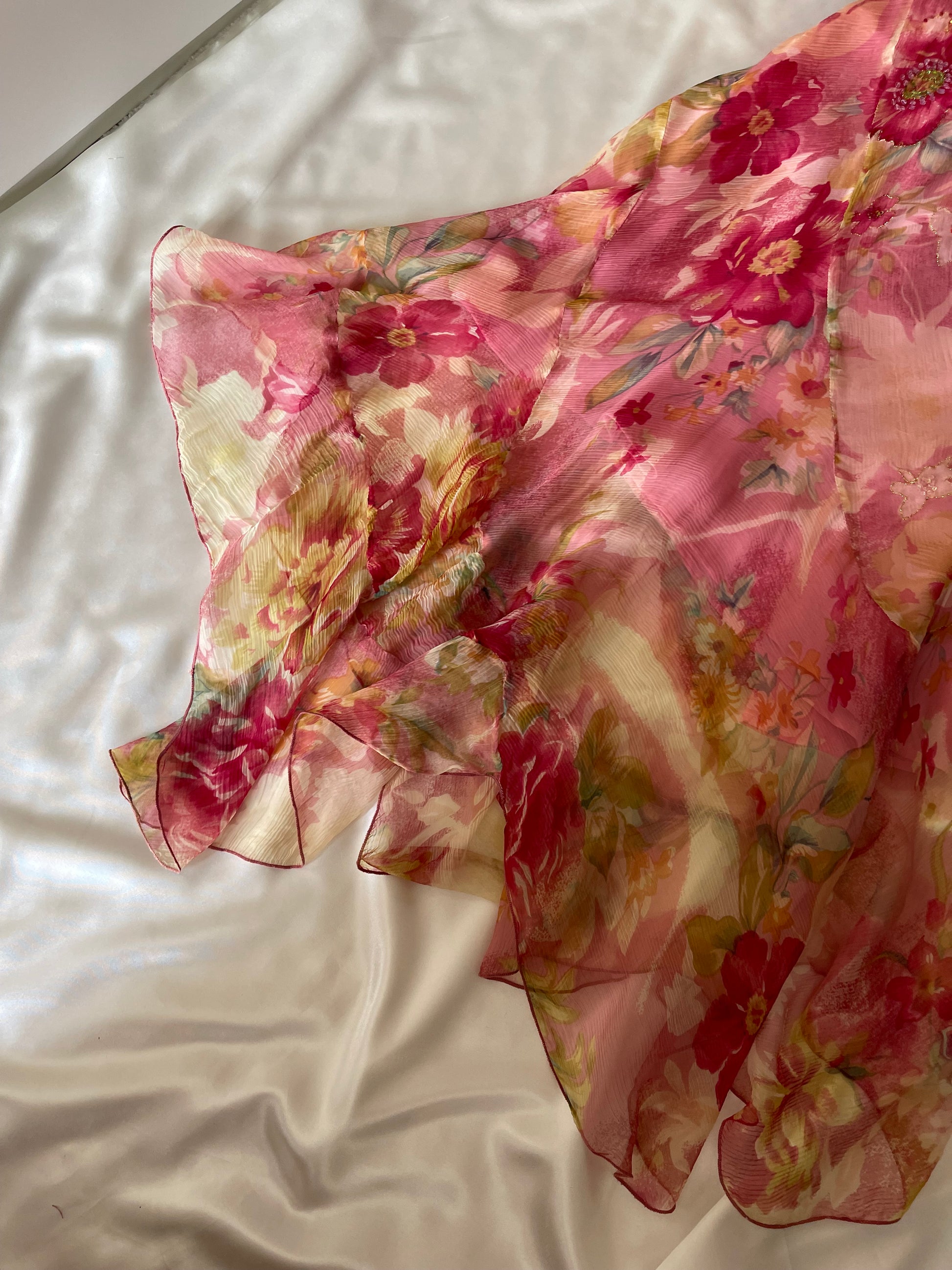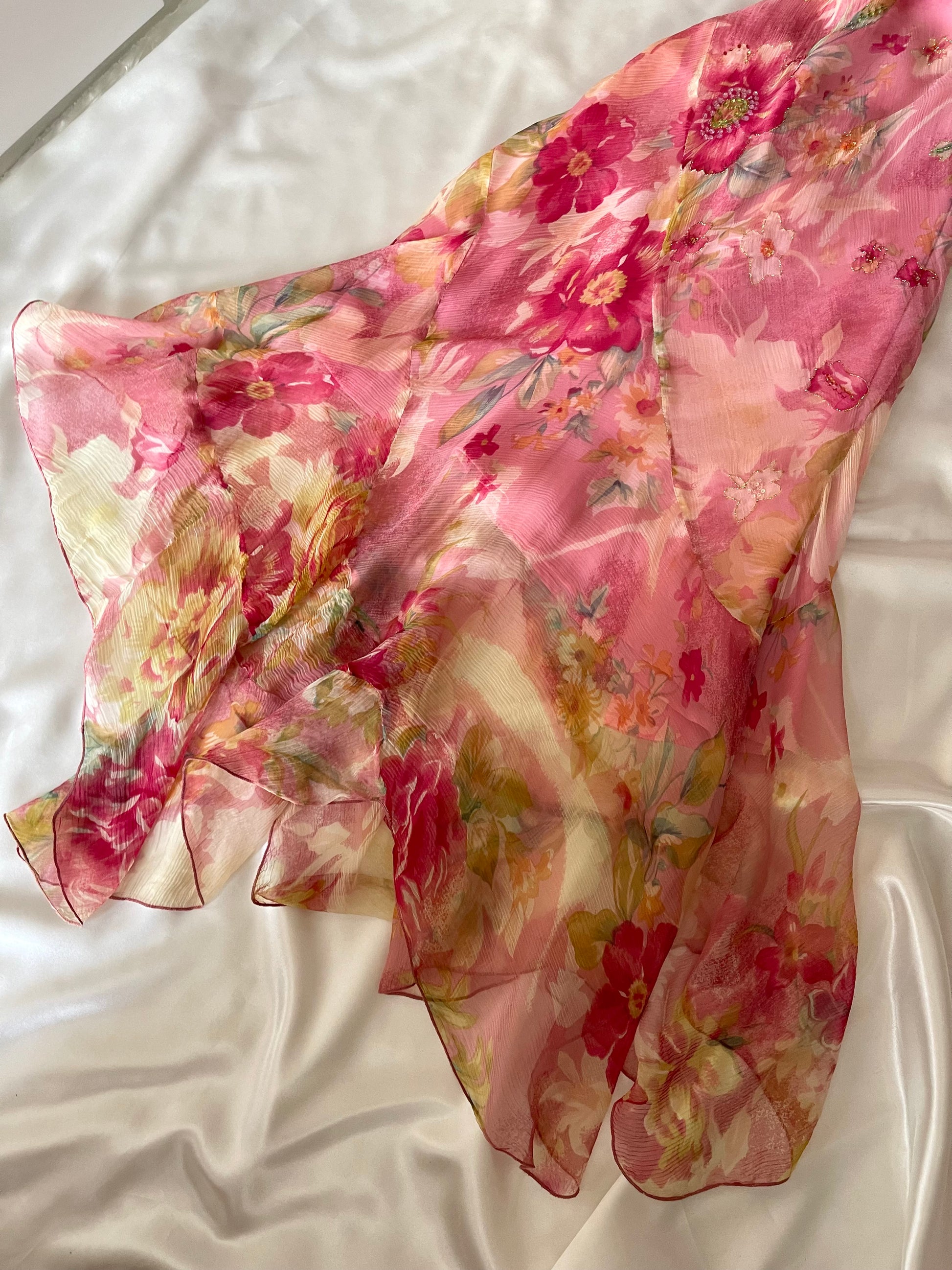 Gorgeous floral pink vintage dress by acclaimed French designer Rene Derhy.