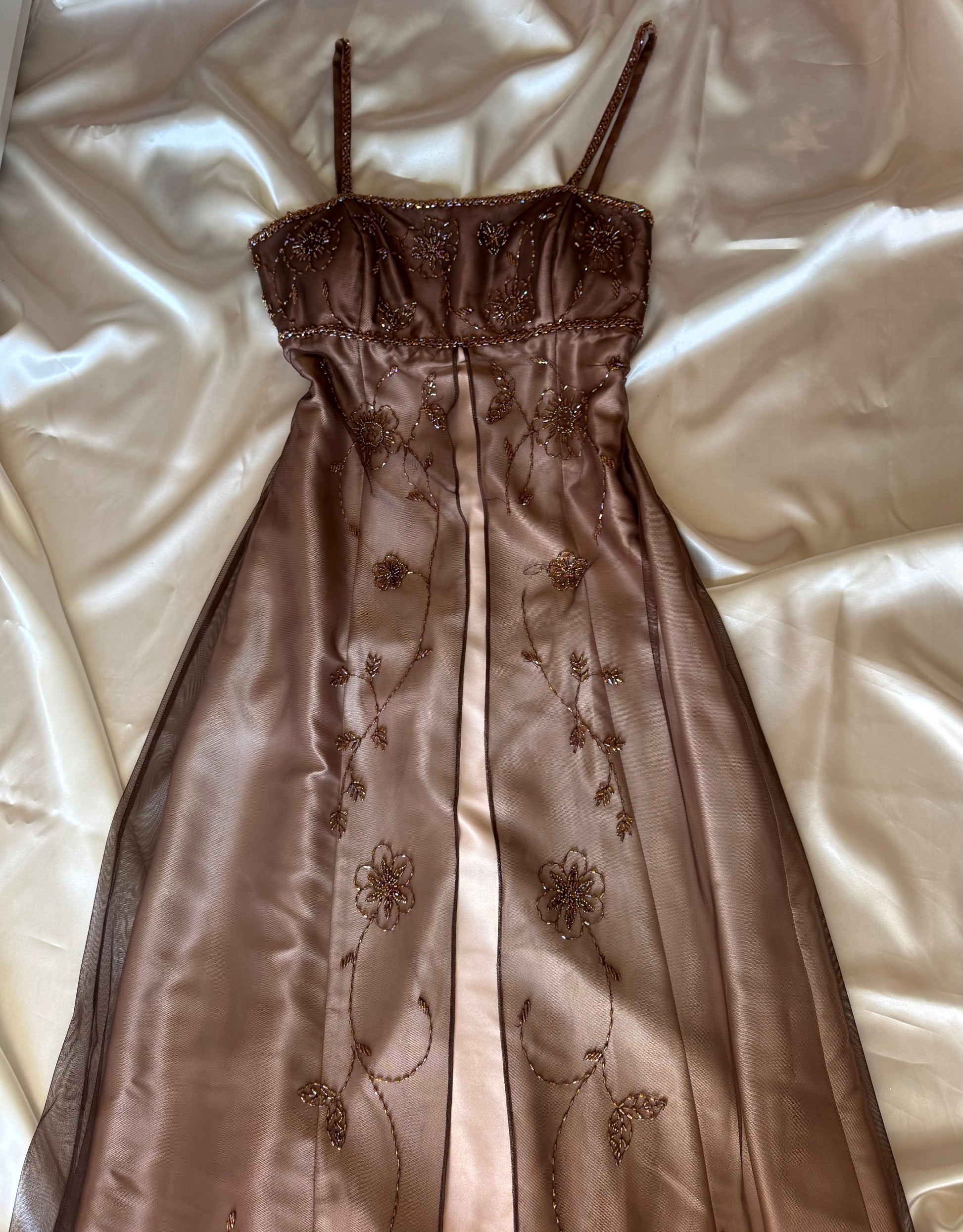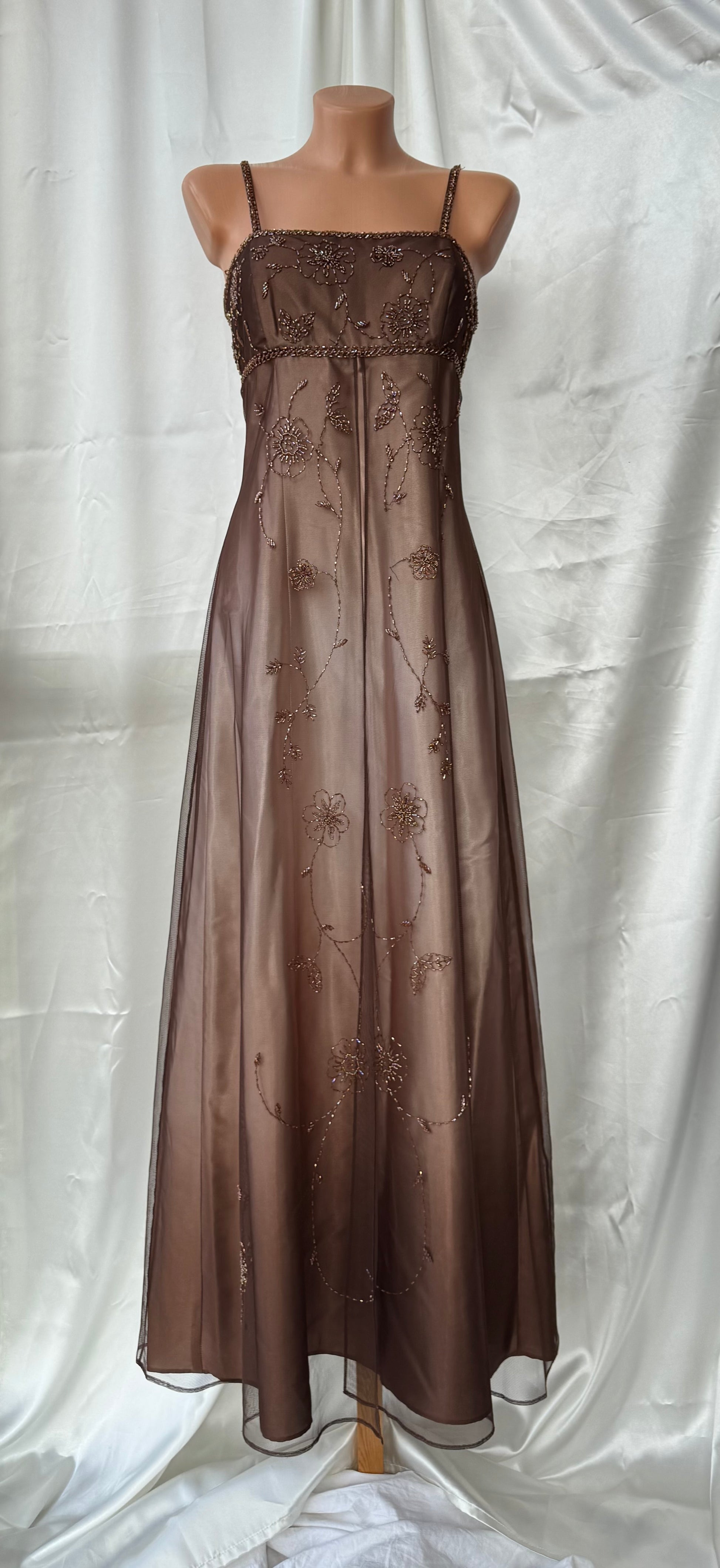 Gorgeous Brown Tulle Beaded Vintage Royal Gown