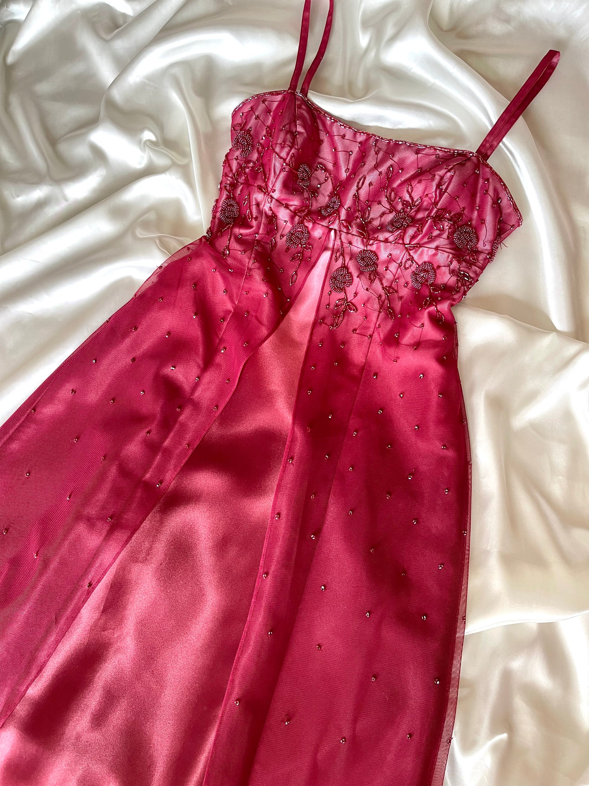 Gorgeous Red Tuille Beaded Vintage Royal Gown