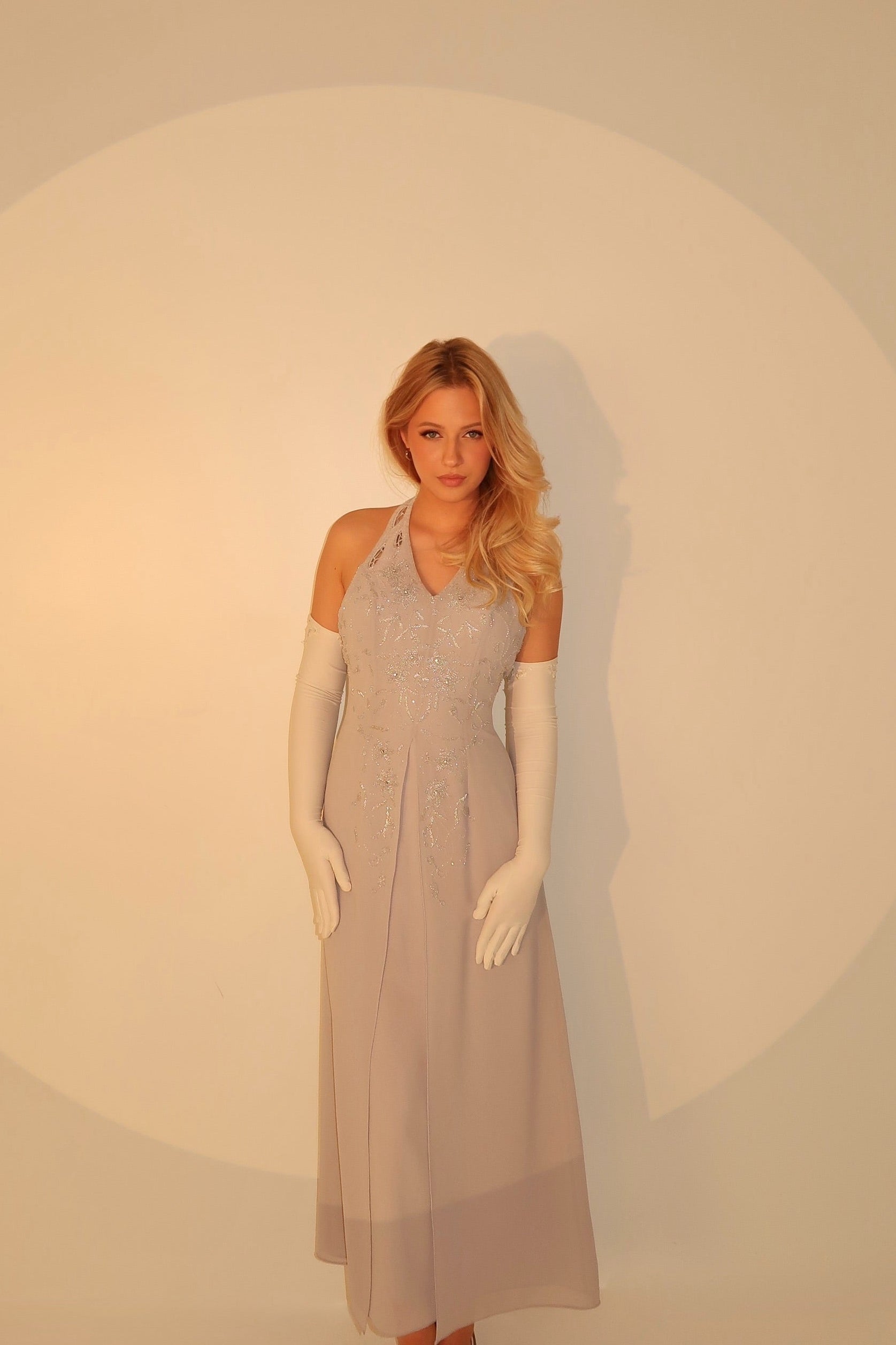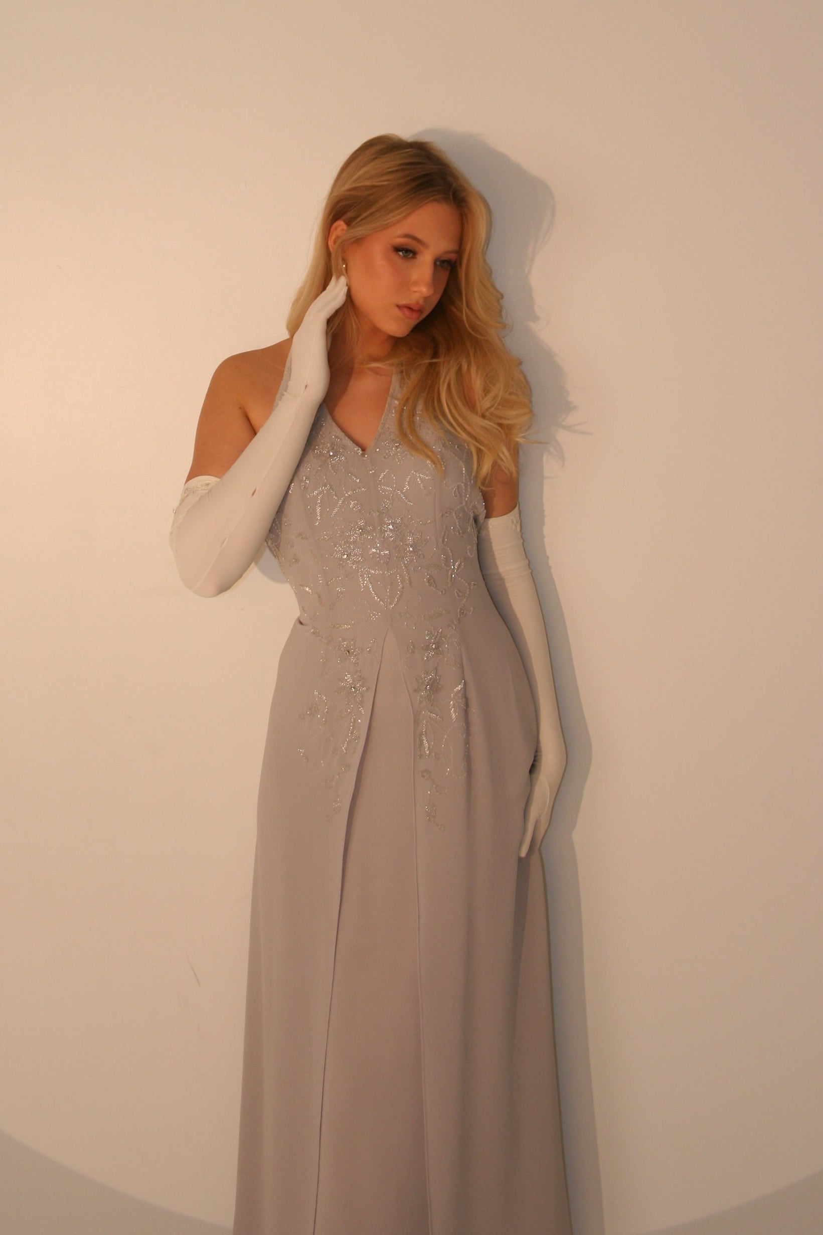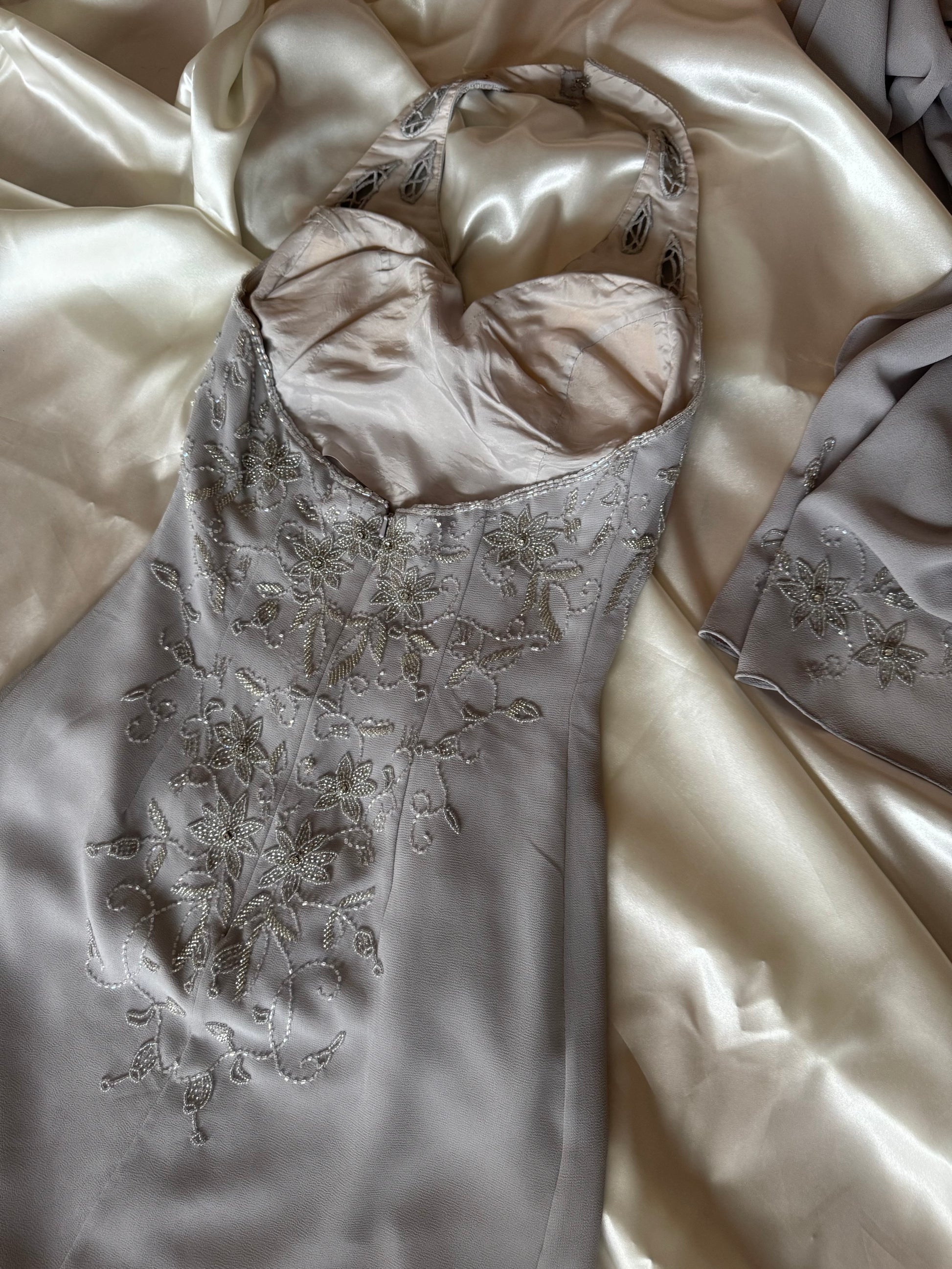 Gorgeous Gray Beaded Floral Vintage Royal Gown