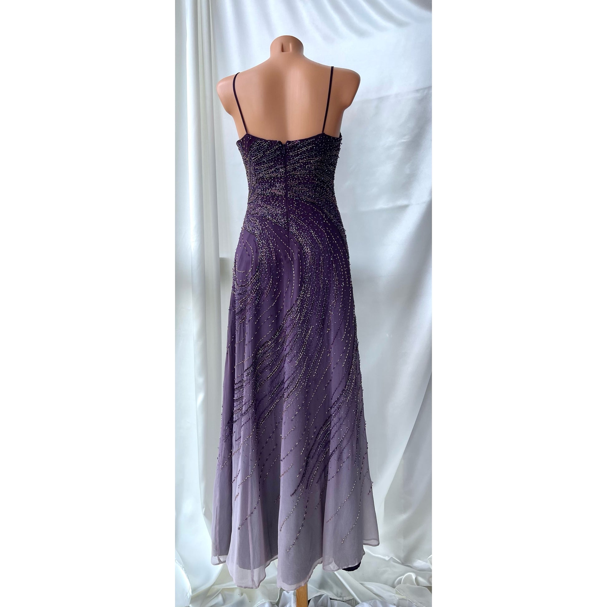 Bust 86cm, waist 66cm, hips free flowing, length 137cm