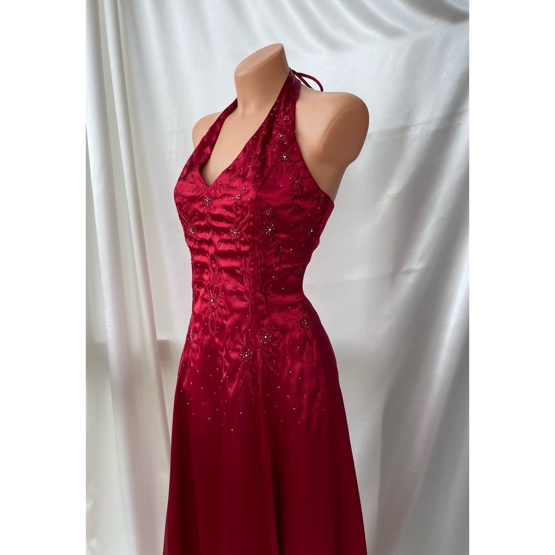Bust 86cm, waist 70cm, hips free flowing, length 145cm
